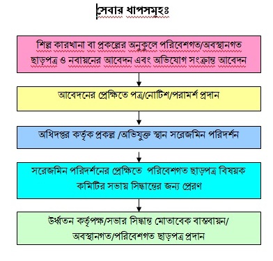 পরিবেশ অধিদপ্তরে আগত সেবা প্রত্যাশীদের প্রত্যাশিত সেবা প্রদান প্রক্রিয়া